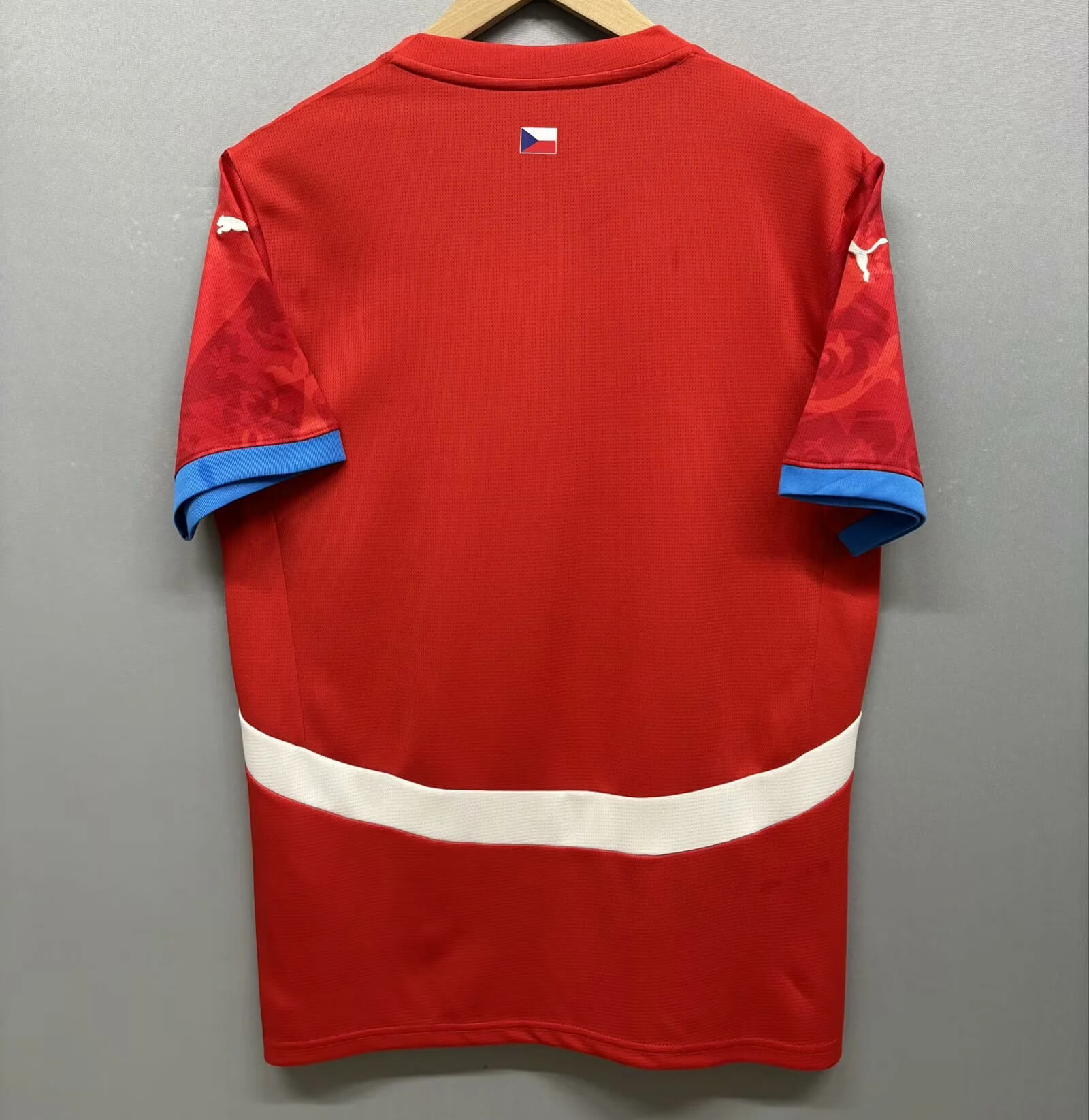 The Czech Republic kit proudly displays the national team’s crest on the chest, symbolizing the country’s footballing heritage. Puma’s logo is prominently featured, signifying the collaboration between the brand and the national team. These authentic details ensure that fans feel a genuine connection to the team, whether they’re in the stands or on the streets.