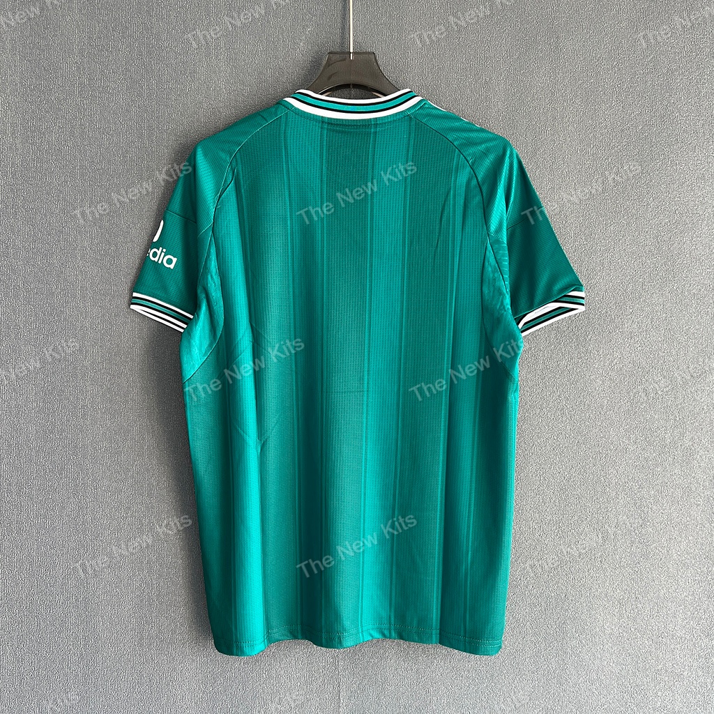 This Liverpool kit 25 26 features a vintage chest logo. It pays tribute to a golden era of football. The white Liver Bird crest pops against the green fabric. Black and white stripes on the collar complete the design. These authentic details make the Liverpool third kit a must-have for every collector.