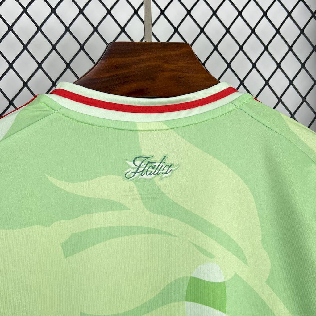 The new Italy Women Euro Kit 2024 away jersey delivers a standout design that blends heritage, fashion, and elite performance. Featuring a vibrant pastel green base layered with tonal tropical patterns, this kit redefines what a national team shirt can be.