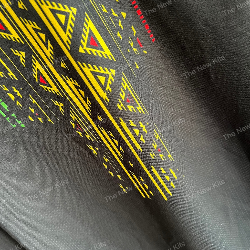 The Mali 2024 third football kit introduces a striking and bold design. With a predominantly black base, this kit offers a sleek and modern look while retaining key cultural elements that connect it to Mali’s heritage. The third kit features the same intricate pattern used in the home and away jerseys, including a subtle graphic inspired by traditional Malian art, making it both visually appealing and symbolic.