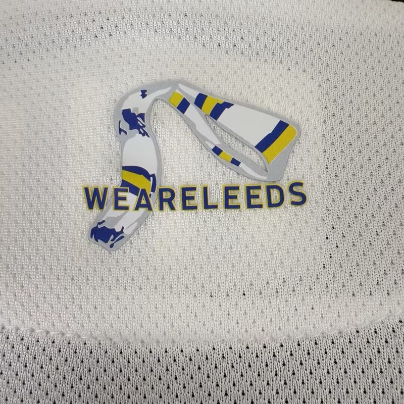 Drawing on decades of Leeds United tradition, the home player shirt features a crisp white base that honors the club’s storied past from Revie’s Busby Babes to Bielsa’s revolution. Subtle tonal jacquard stripes ripple across the torso, evoking the floodlight shadows on the pitch. A slim blue sleeve cuff and a nod to the iconic yellow trim on the collar complete the look, ensuring you carry the Elland Road spirit into every fixture.