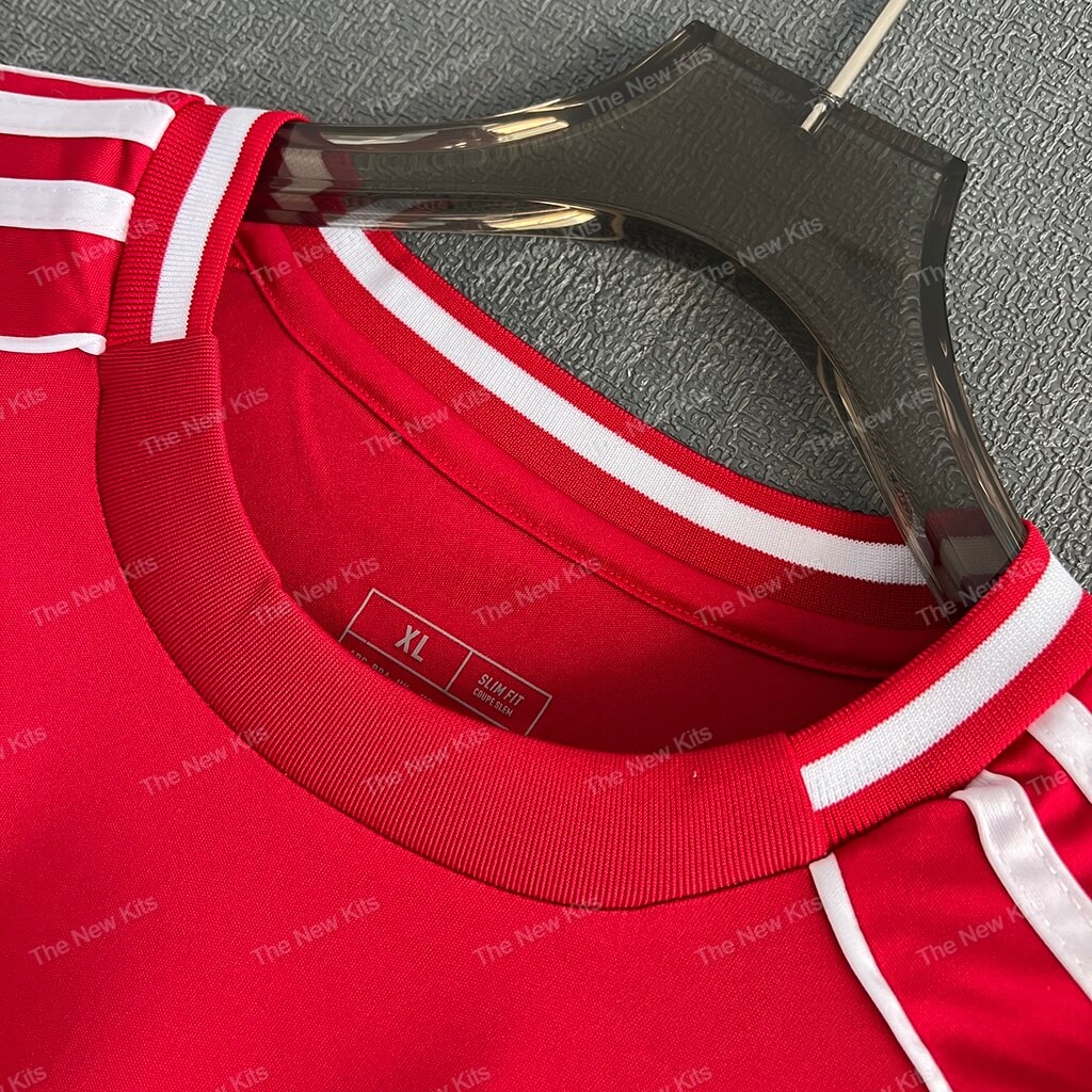 Every detail on this Liverpool new kit carries meaning. The white piping along the sleeves and sides gives the shirt a sleek silhouette that complements dynamic movement on the pitch. The classic three white Adidas stripes run proudly across the shoulders, symbolizing strength and unity. The LFC crest and sponsor logos maintain their familiar white tones, standing out with clarity and pride.