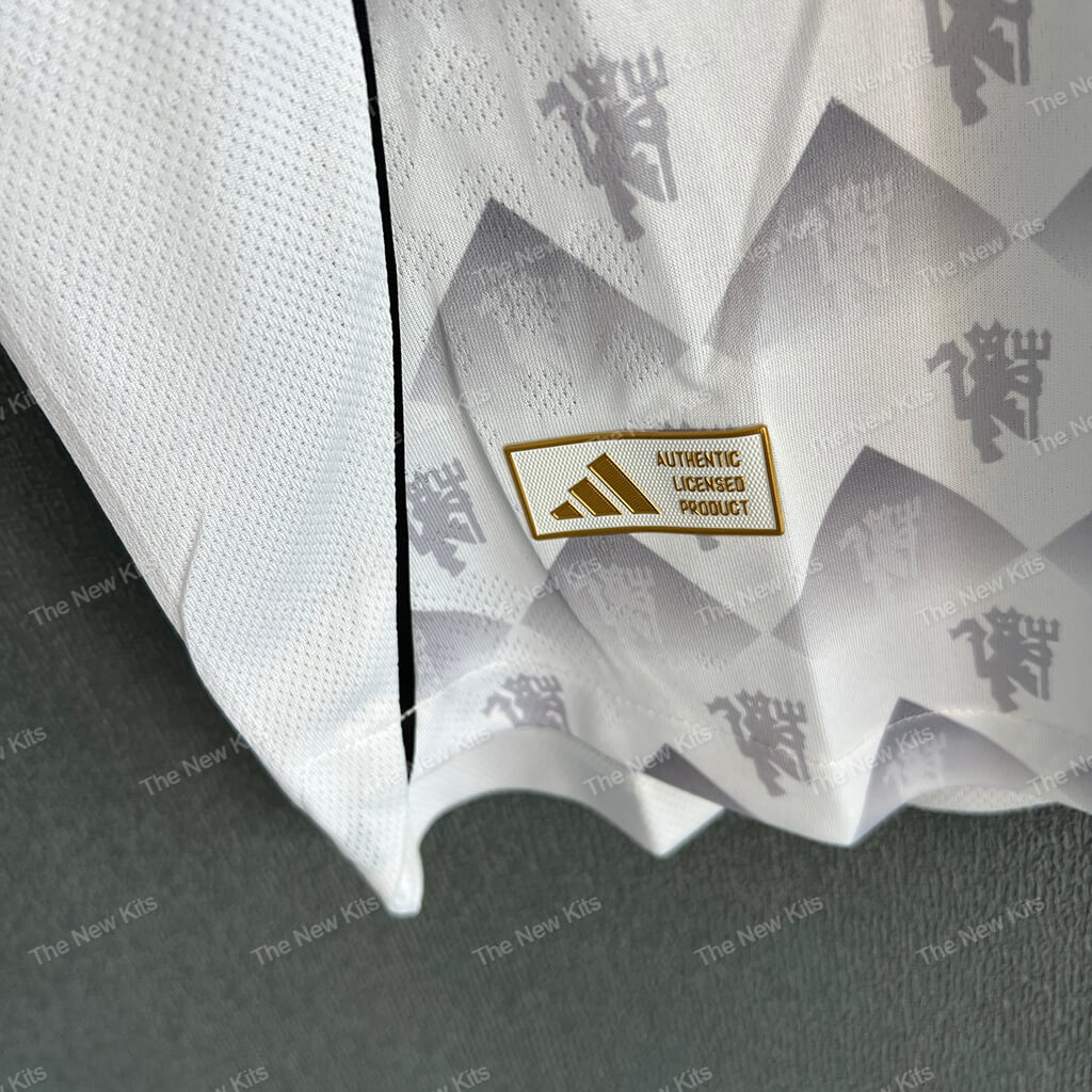 The man utd kit Special “Devil” 25/26 third is a match-ready shirt with bold attitude. It pairs a light base with woven devil motifs. It also offers player-grade fit and ventilation. Wear it on the pitch or display it in your collection.