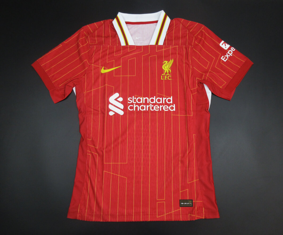 The Liverpool new kit 24/25 home player version is a perfect fusion of history and modern innovation, designed by Nike. Drawing inspiration from the legendary 1984 European Cup triumph in Rome, this kit brings back the iconic classic red with a fresh twist, incorporating sleek chrome yellow pinstripes. This design celebrates one of Liverpool’s most memorable victories while offering a bold and updated look. The V-neck collar and clean, minimalist design details add a contemporary edge to the traditional Liverpool aesthetic, making this kit ideal for both matchday and casual wear.