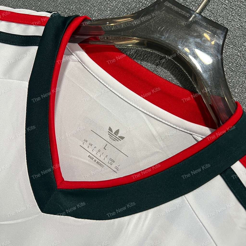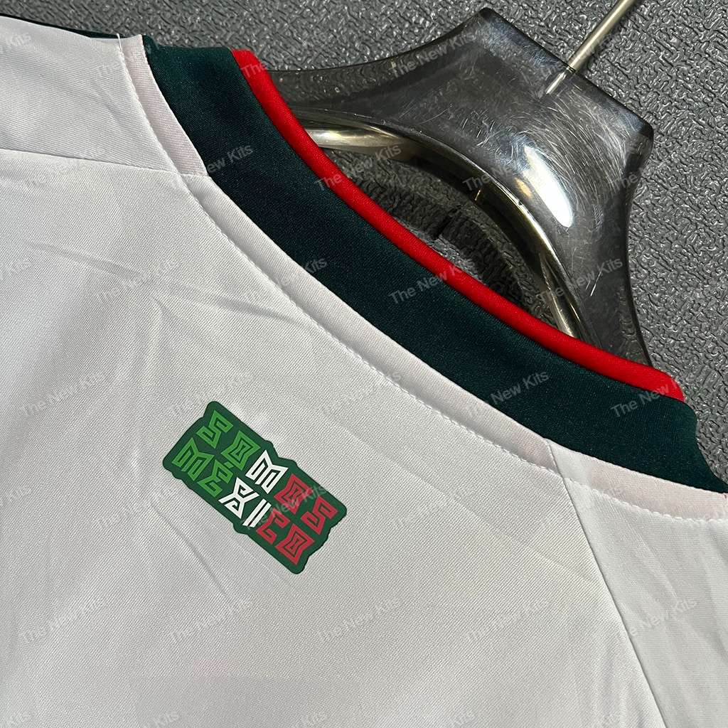 Deep green trim with red pops on the collar and cuffs—unmistakably Mexico.