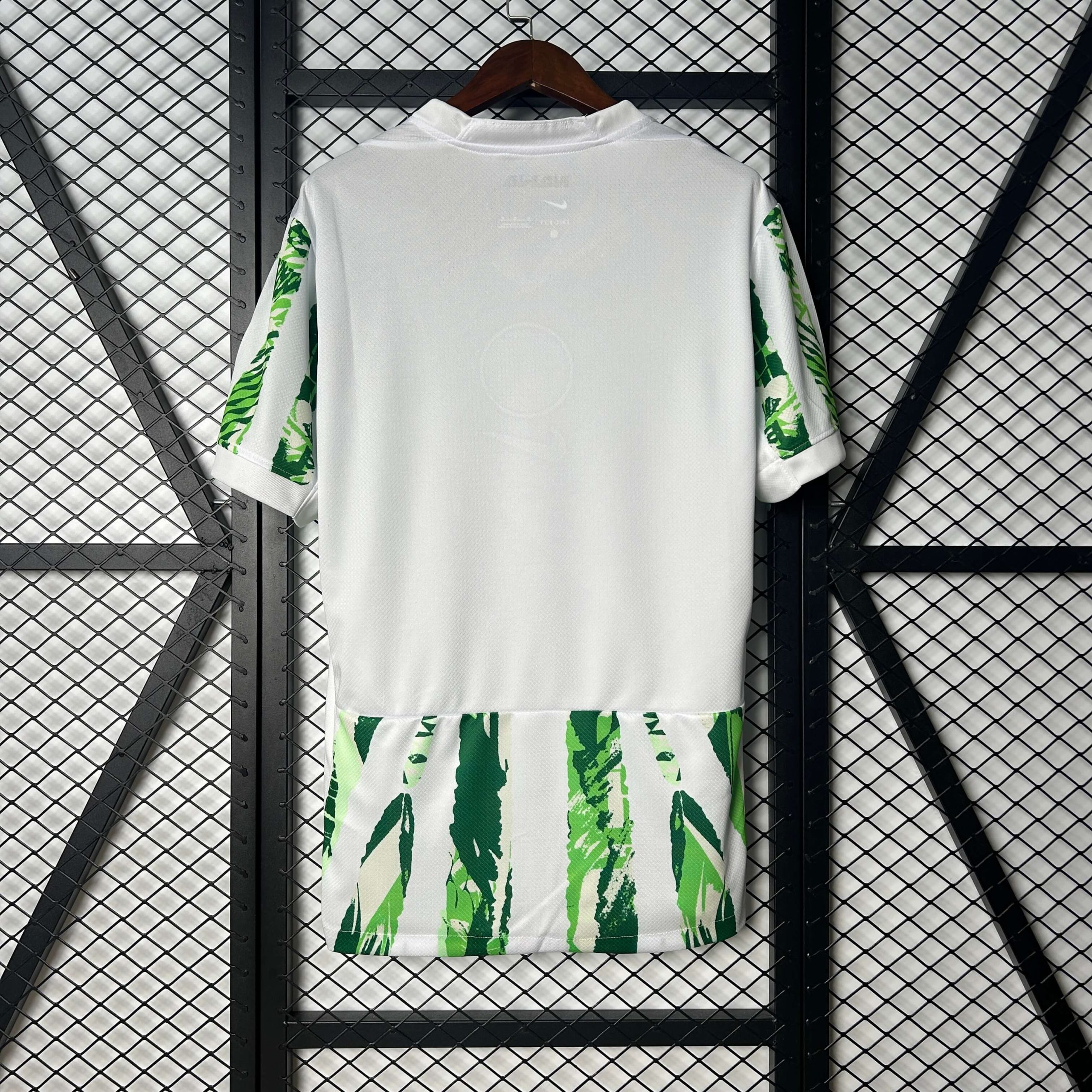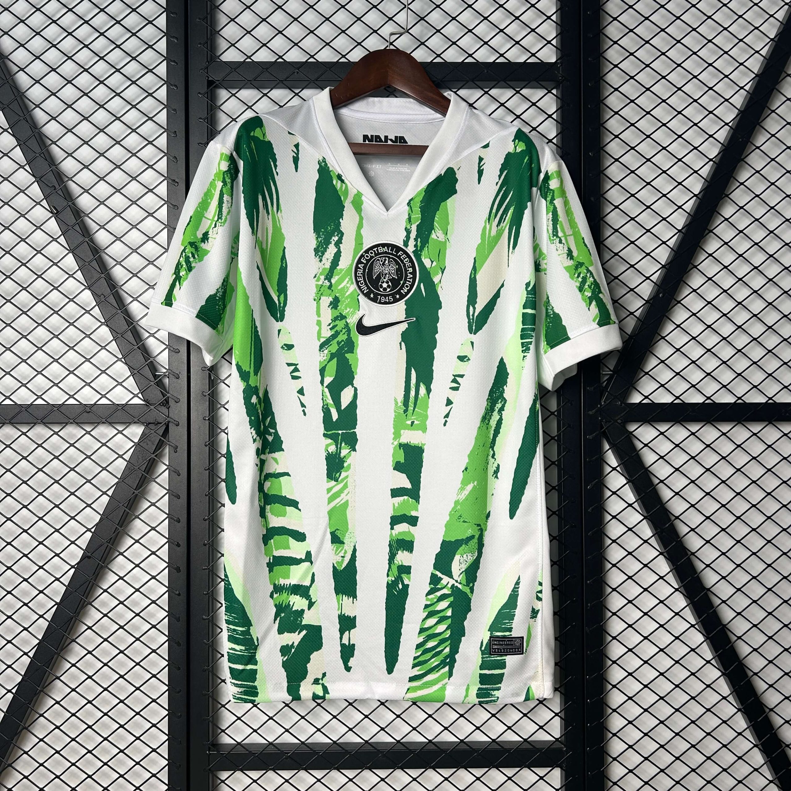 The abstract green palm-inspired design pays tribute to Nigeria’s lush natural landscape and echoes cultural motifs seen in traditional art and textiles. The updated crest, featuring the Nigeria Football Federation’s iconic eagle emblem in black and white, adds a layer of contrast and modern minimalism.