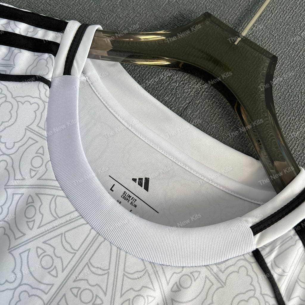 Tonal Pattern Detailing: Elegant patterns subtly cover the jersey, adding visual depth and honoring the club’s historic prestige.