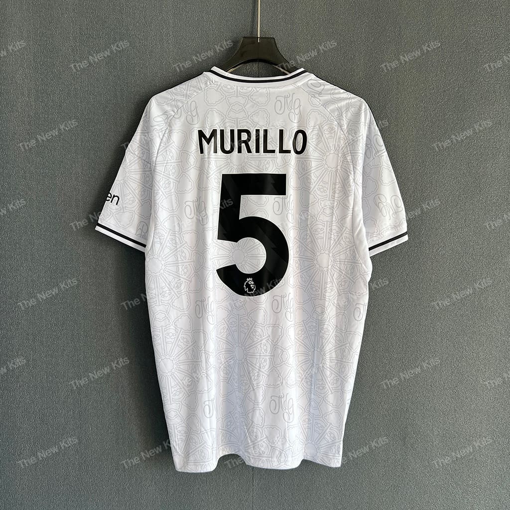 This Nottingham Forest jersey features a crisp white base, setting the tone for a modern and composed visual identity. What elevates the kit is the intricate tonal pattern embedded across the fabric—a symmetrical floral and geometric motif that adds texture without overwhelming the shirt’s minimalist silhouette.