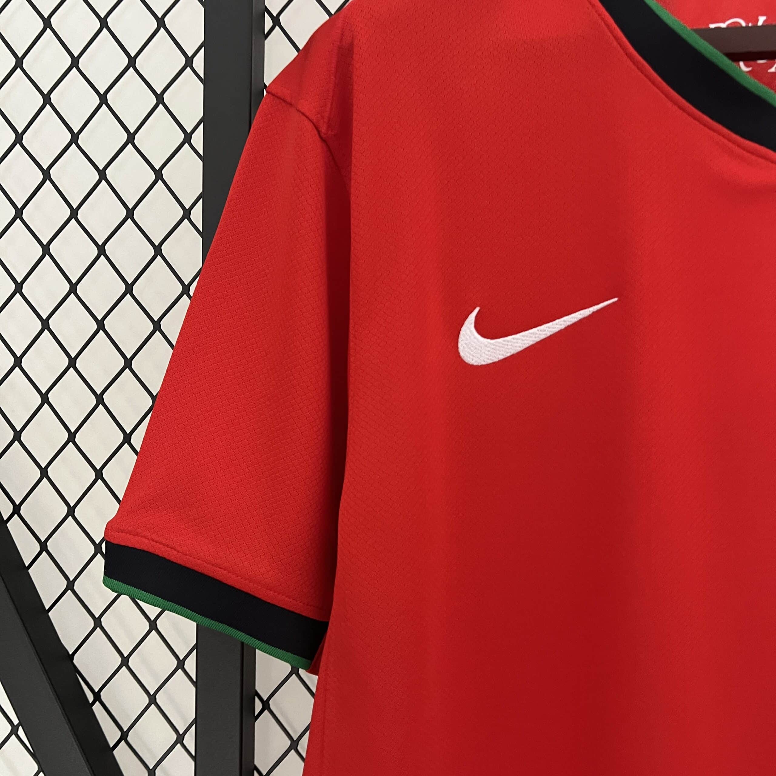 The fan version of the Portugal Euro 2024 home kit is crafted for everyday comfort, with a looser fit compared to the player version. Made from high-quality materials, it provides a comfortable wear while ensuring durability. This fan-friendly design allows supporters to cheer on Portugal with ease, whether they’re in the stadium or watching from home.