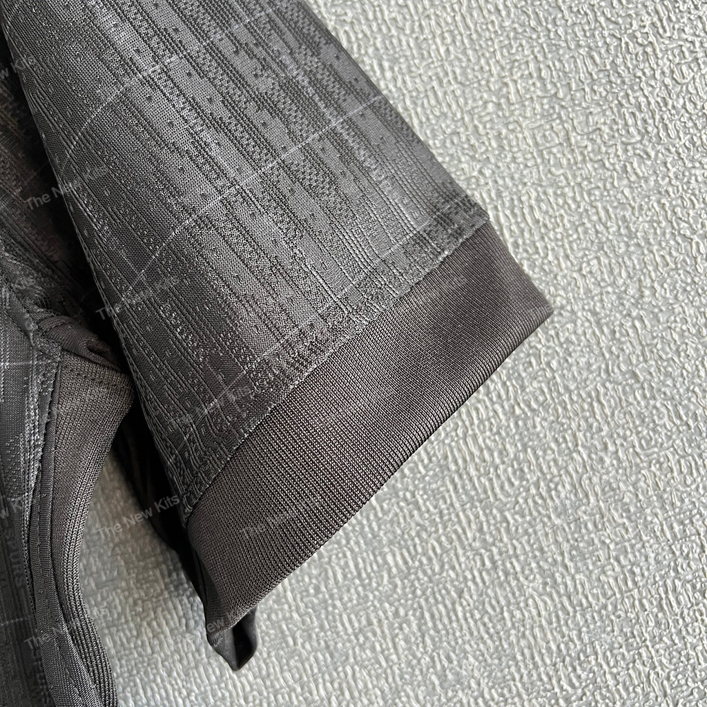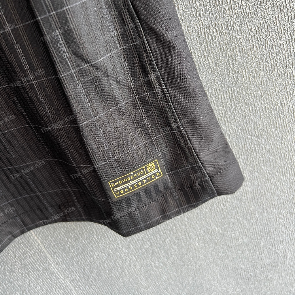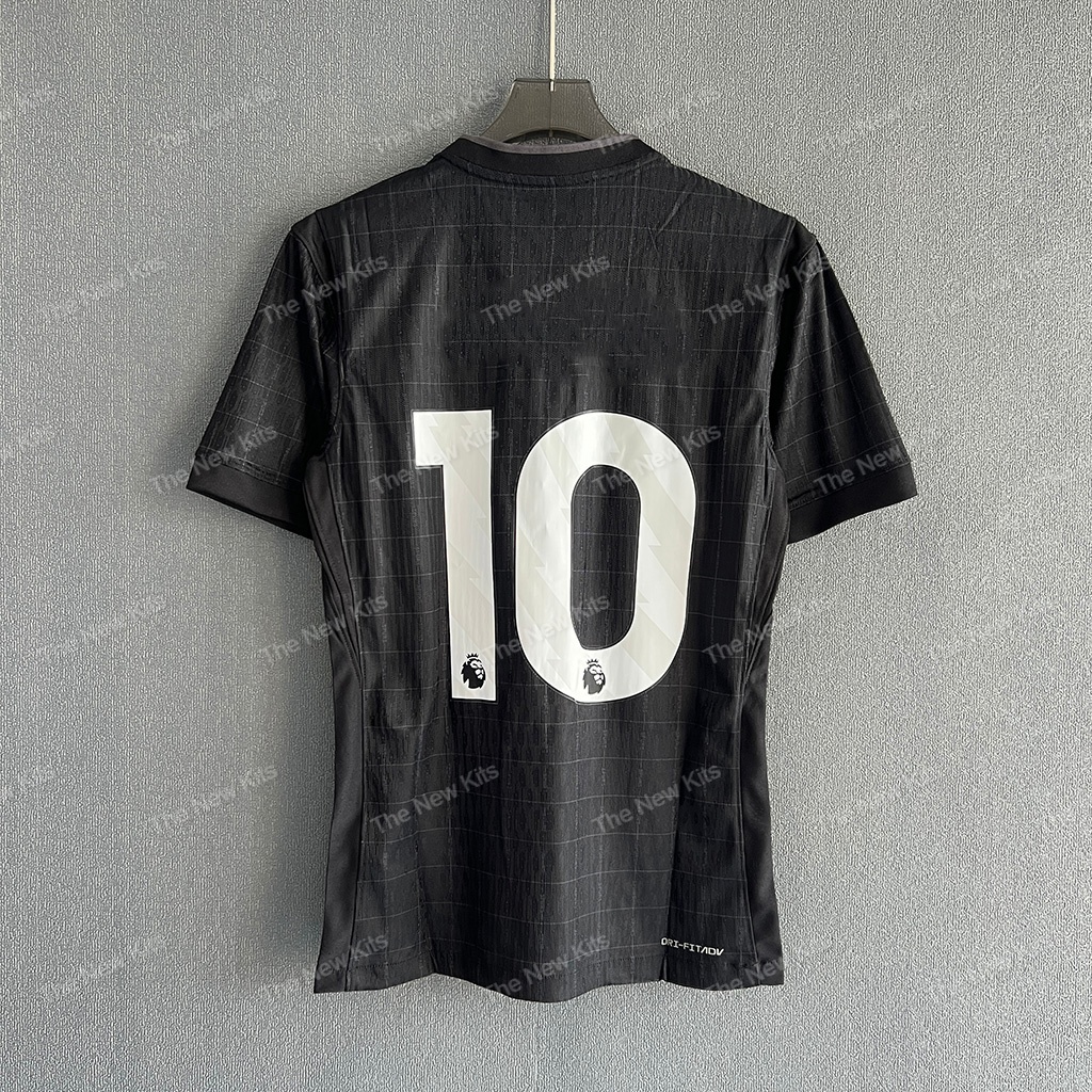 This away jersey showcases a striking black base, featuring subtle checkered detailing that adds depth and texture. The pure white accents, including the iconic Nike swoosh, club crest, and bold AIA sponsor logo, create a high-contrast, sophisticated look. The minimalist round collar and clean sleeve cuffs enhance the jersey’s sleek aesthetic.